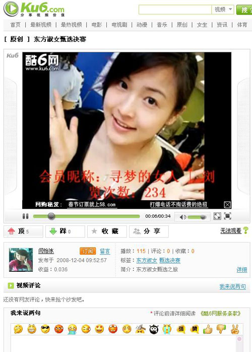 2008年12月12日“东方淑女甄选之旅”网络媒体报道--Ku6.com